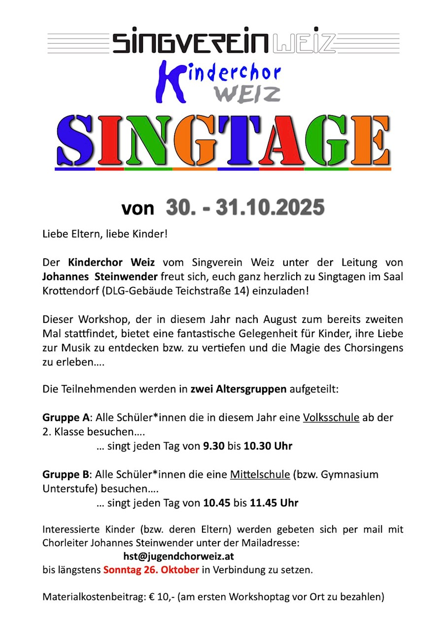 Der "Jugendchor Weiz" entstand im September 2003 gemeinsam mit dem "Kinderchor Weiz".